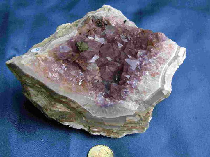 Amethyst auf Schale aus graugebändertem Achat - schmückt jede Sammlung.