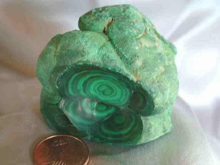 Massiv-knolliger Malchit, gebändert, stellenweise angeschliffen und poliert